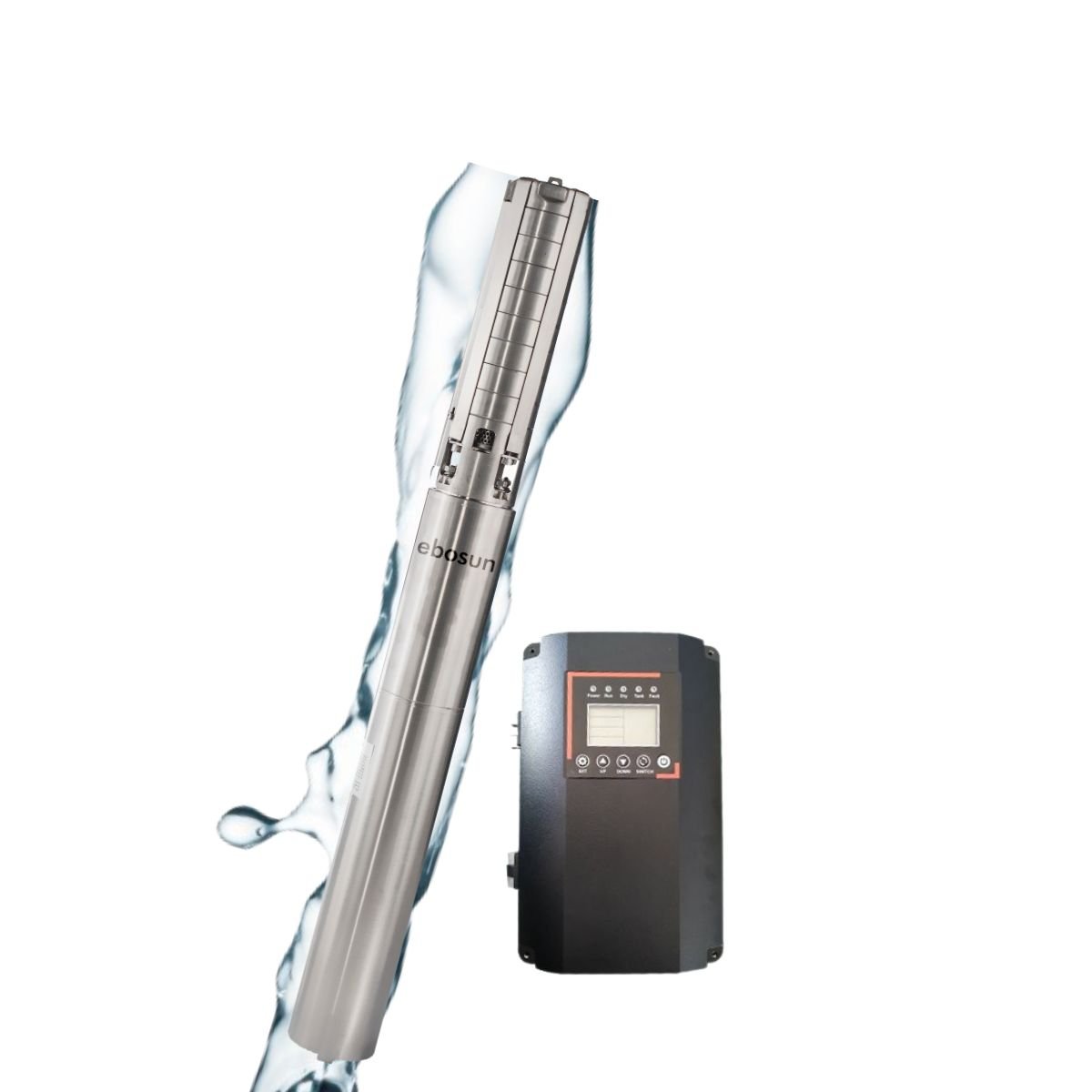 Bomba Solar sumergible Hibrida 4SP5.24 ebosun para pozos. Agiliza la instalación de bombas solares sumergibles ofreciendo una solución de alto rendimiento. Diseñada para entornos difíciles, la tecnología de bomba solar compacta y potente de EBOSUN proporciona una conversión eficiente de la energía de la luz solar en agua limpia.