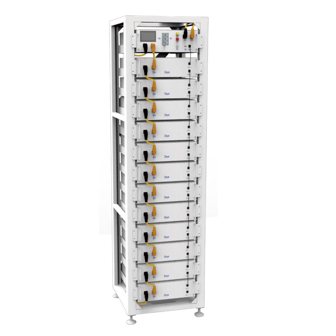 12 x Baterias Litio DEYE BOS-GM de alto voltaje. Este kit solar fotovoltaico cuenta con 12 Baterias DEYE de 5.12Kw/h. Los 12 modulos de Litio nos permite disponer de 60 Kw acumulados para el consumo eléctrico. Los acumuladores de litio están especialmente diseñados para instalaciones solares de mediana y gran potencia. Con la bateria Deye se obtiene un óptimo rendimiento con 6.000 ciclos de carga y capacidad de descarga hasta el 80%. Su timepo de carga-descarga es muy reducido, en solo dos horas(C2) podemos consumir la energia acumulada y volverse a reponer la carga en 2 horas. Incluye Brackets soportes Pared y cables de conexion a inversor.
