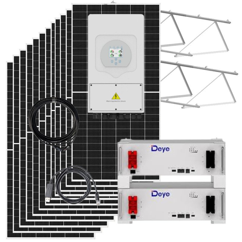 2 x Baterias Litio DEYE SE-G5.1 pro-b Este kit solar fotovoltaico cuenta con 2 Baterias DEYE de 5.12Kw/h. Los 2 modulos de Litio nos permite disponer de 10.2 Kw acumulados para el consumo eléctrico. Los acumuladores de litio están especialmente diseñados para instalaciones solares de mediana y gran potencia. Con la bateria Deye se obtiene un óptimo rendimiento con 6.000 ciclos de carga y capacidad de descarga hasta el 80%. Su timepo de carga-descarga es muy reducido, en solo dos horas(C2) podemos consumir la energia acumulada y volverse a reponer la carga en 2 horas. Incluye Brackets soportes Pared y cables de conexion a inversor.